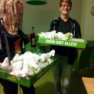 Ein klasse Berlinwochenende! Zuerst haben wir einen schönen Tag auf der Anti-TTIP/CETA Demo verbracht. Darauf sind wir mit der GRÜNEN JUGEND Charlottenburg-Wilmersdorf noch als Endspurt zur Berliner Wahl zum Kneipenwahlkampf losgezogen und haben Popcorn, Sattelschoner, Bierdeckel, Traubenzucker, Brausepulver und cooles Infomaterial an die Menschen verteilt 💚